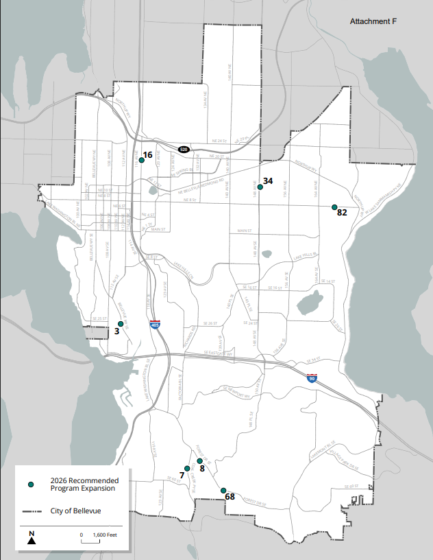 You may also recall that the city’s Transportation staff recently did a major outreach effort about locations where we may install speed cameras. The current program is listed here, and seven more cameras (Bellevue Way SE, Coal Creek Parkway SE, two on Forest Drive SE, 116th Avenue NE, 148th Avenue NE and NE 8th Street – see first map) will be installed in 2026, with a number of other locations identified for future years. The speed camera program was discussed at City Council on December 2nd, 2025.